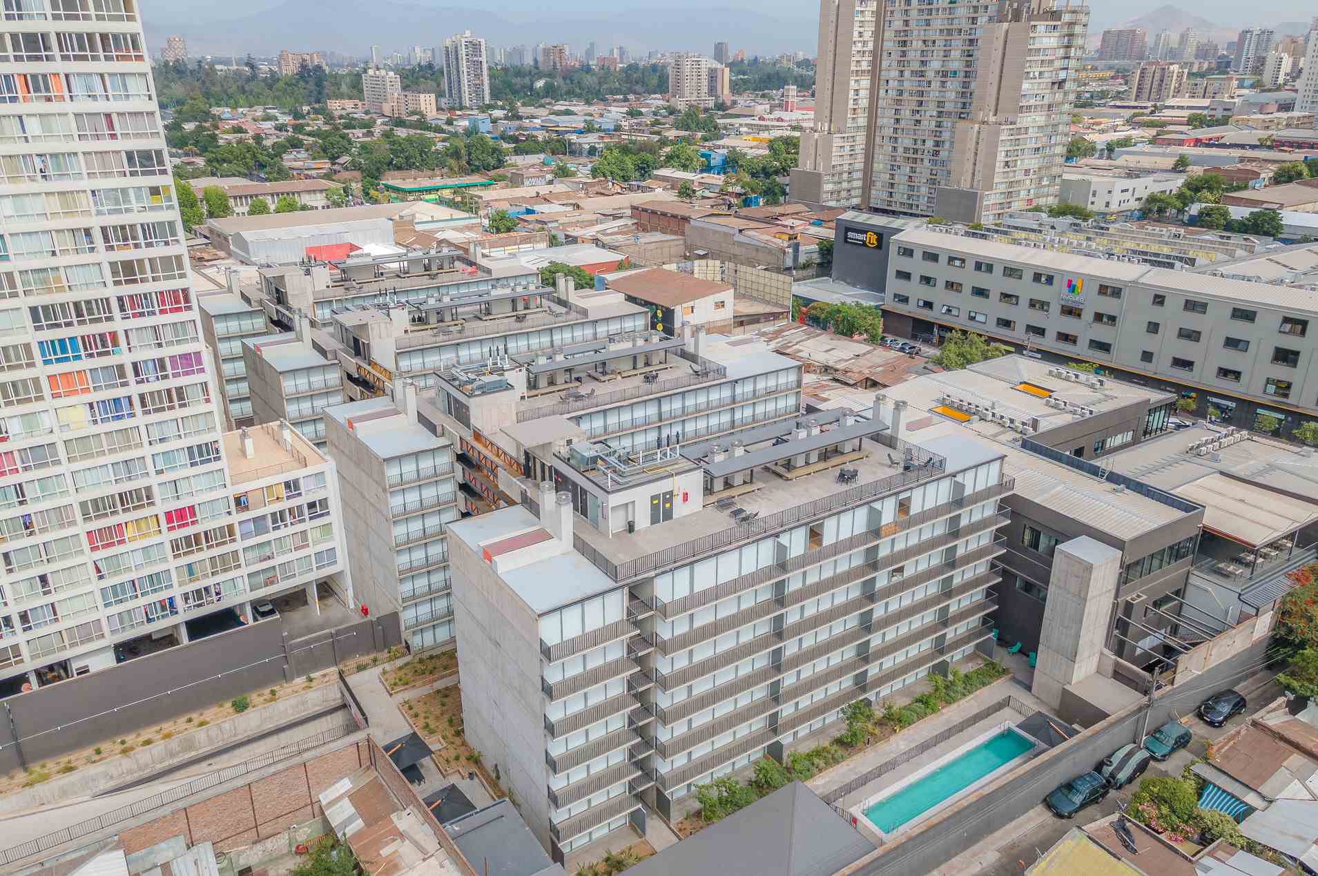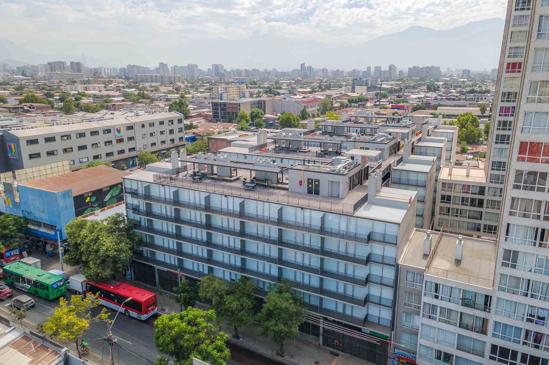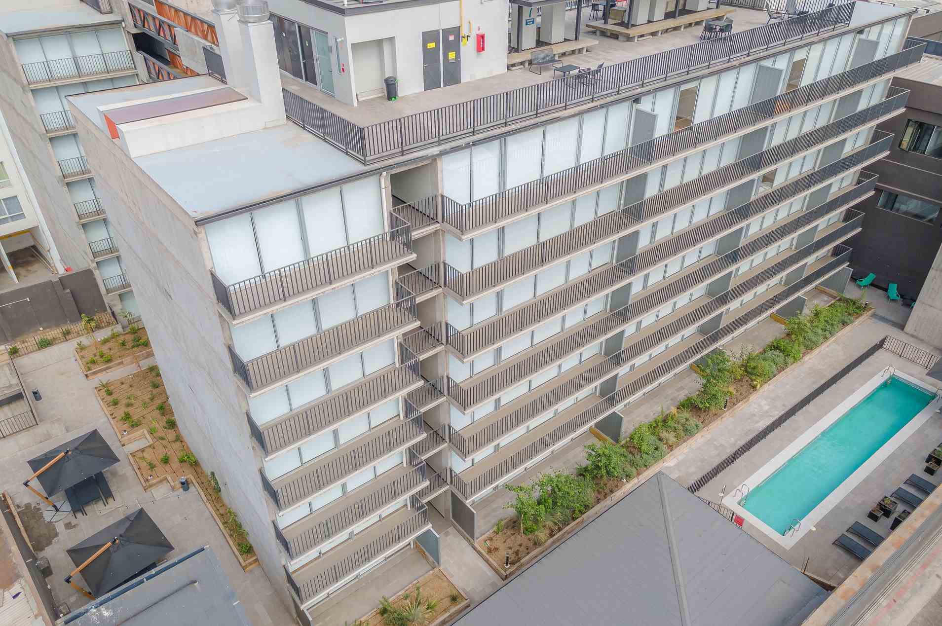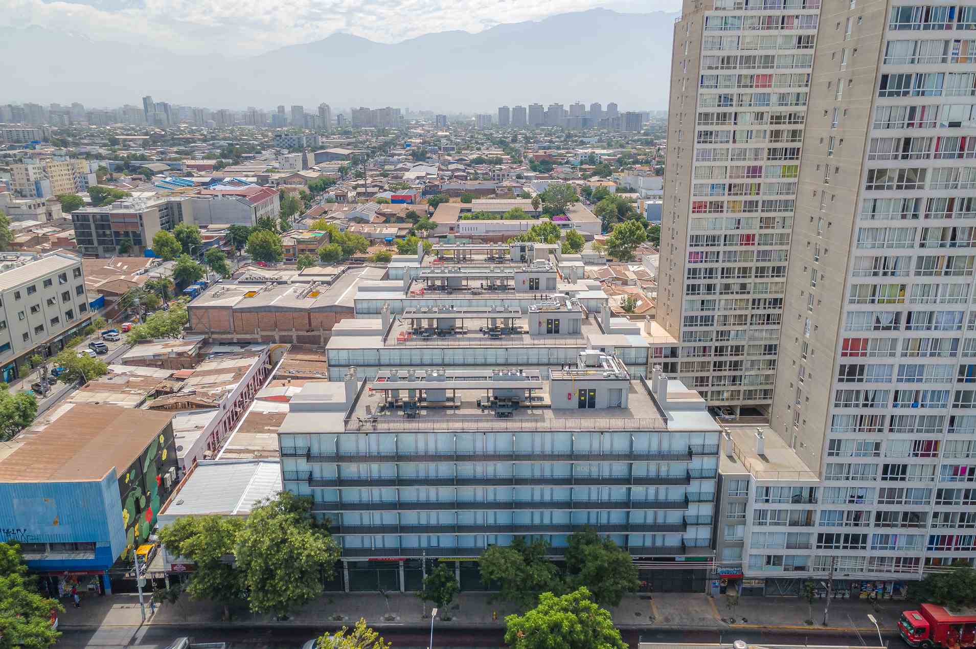 Ganador del Premio Aporte Urbano 2023 como Mejor Proyecto de Uso Mixto, Edificio San Diego tiene 4 torres de 7 pisos. Ubicado en Santiago Centro, cerca de Parque O’Higgins y a 10 min. del Metro Rondizzoni. Ofrece seguridad, piscina, quinchos, gimnasio, lavandería, sala multiuso y más. Dispone de departamentos Estudio, 1 y 2 dormitorios, semi amoblados.