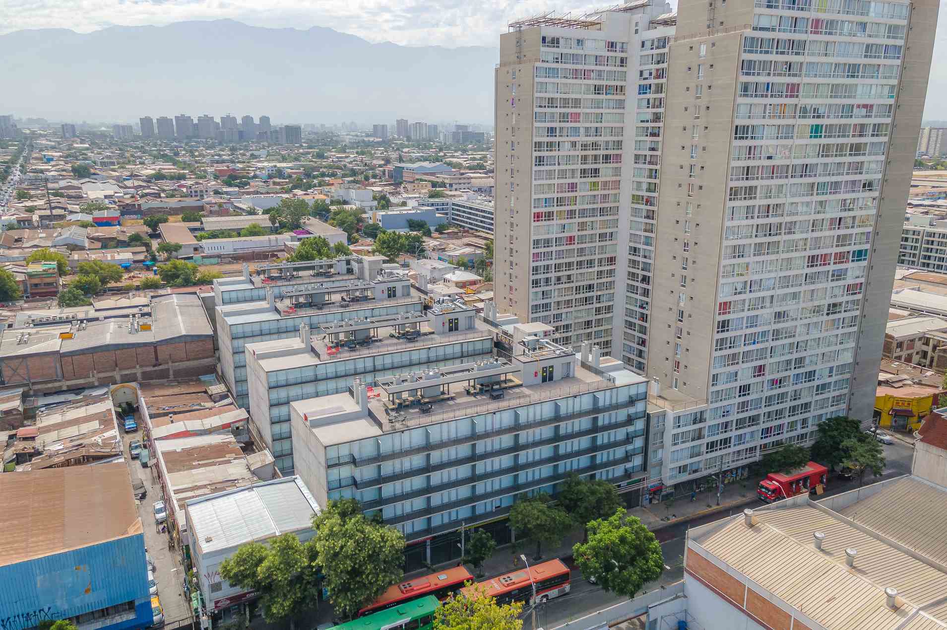 Ganador del Premio Aporte Urbano 2023 como Mejor Proyecto de Uso Mixto, Edificio San Diego tiene 4 torres de 7 pisos. Ubicado en Santiago Centro, cerca de Parque O’Higgins y a 10 min. del Metro Rondizzoni. Ofrece seguridad, piscina, quinchos, gimnasio, lavandería, sala multiuso y más. Dispone de departamentos Estudio, 1 y 2 dormitorios, semi amoblados.