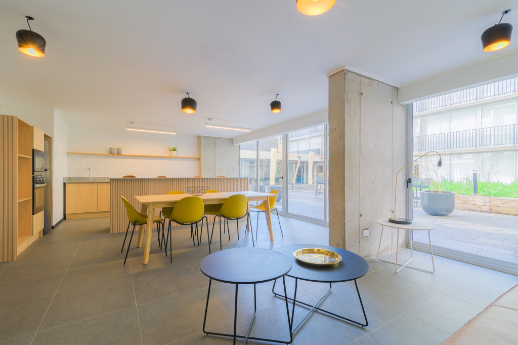 Ganador del Premio Aporte Urbano 2023 como Mejor Proyecto de Uso Mixto, Edificio San Diego tiene 4 torres de 7 pisos. Ubicado en Santiago Centro, cerca de Parque O’Higgins y a 10 min. del Metro Rondizzoni. Ofrece seguridad, piscina, quinchos, gimnasio, lavandería, sala multiuso y más. Dispone de departamentos Estudio, 1 y 2 dormitorios, semi amoblados.